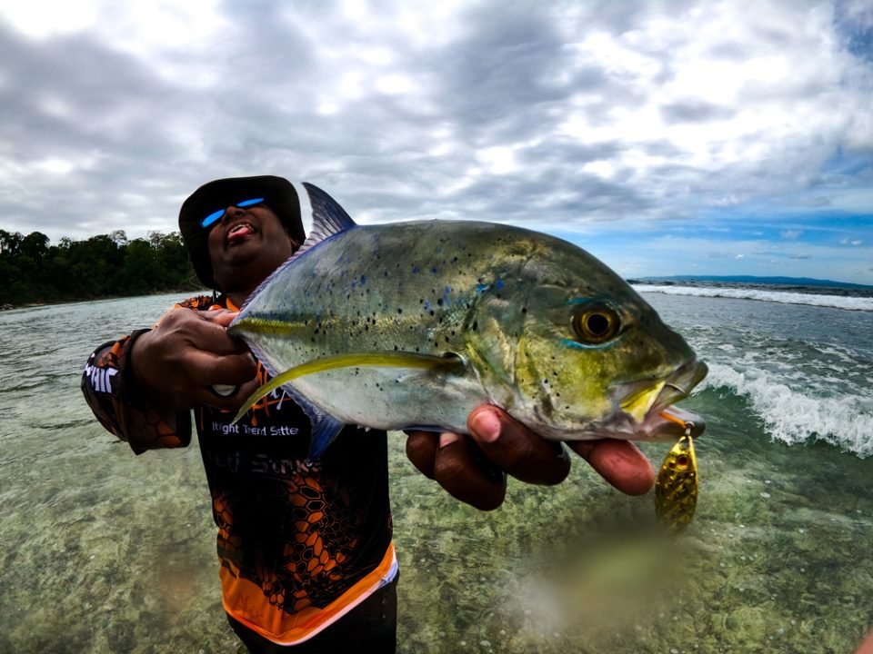 This Bluefin Trevally caught on Silau spoon by Kanicen Nix using a prototype ultralight fishing rod, 4lb shock leader and 2lb Halus braided fishing line.