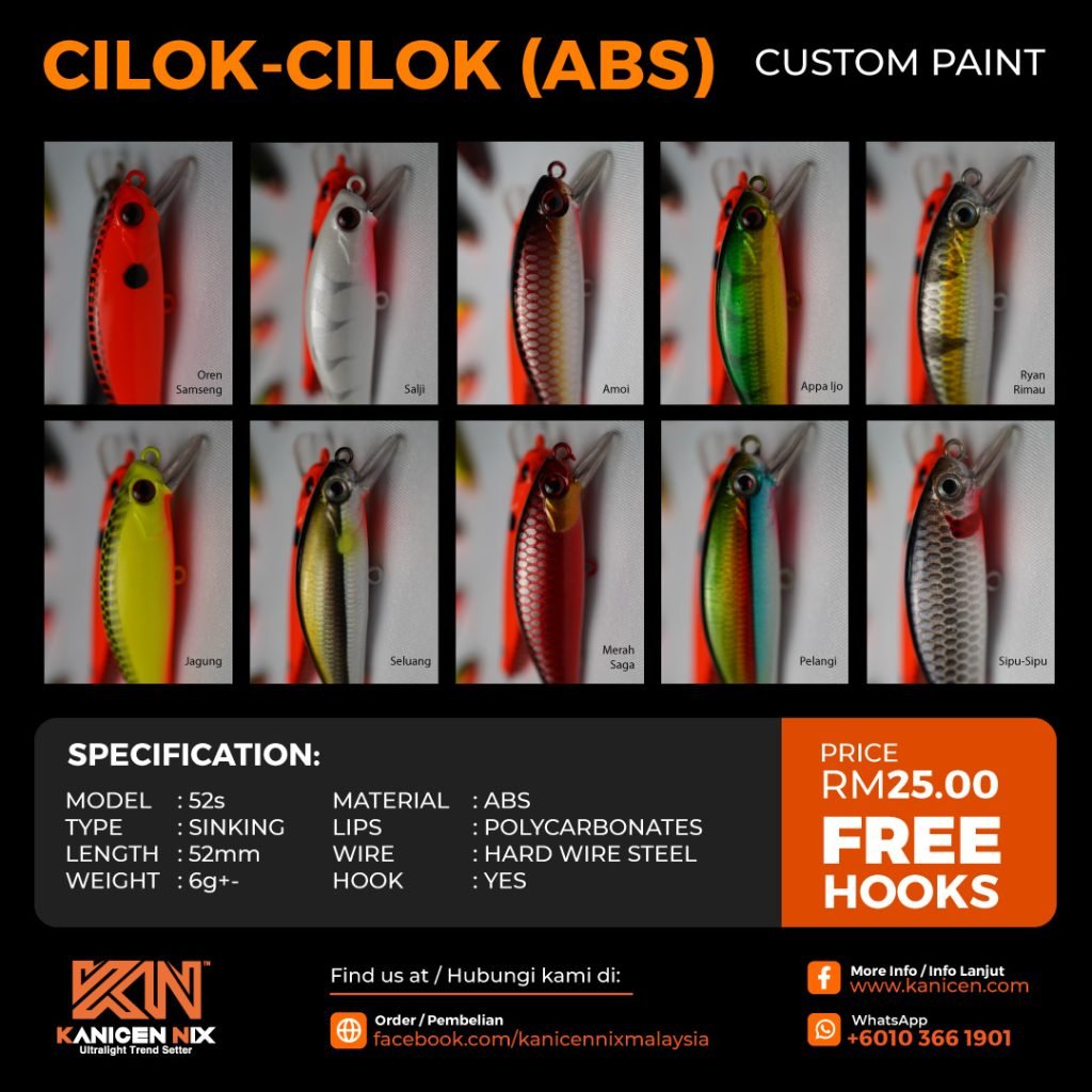 Responding to overwhelming demand, we now offer custom paint options for our latest Cilok-Cilok stream fishing lures. Crafted from ABS material with improved paint quality and finishing, these lures are perfected to excel in our streams.