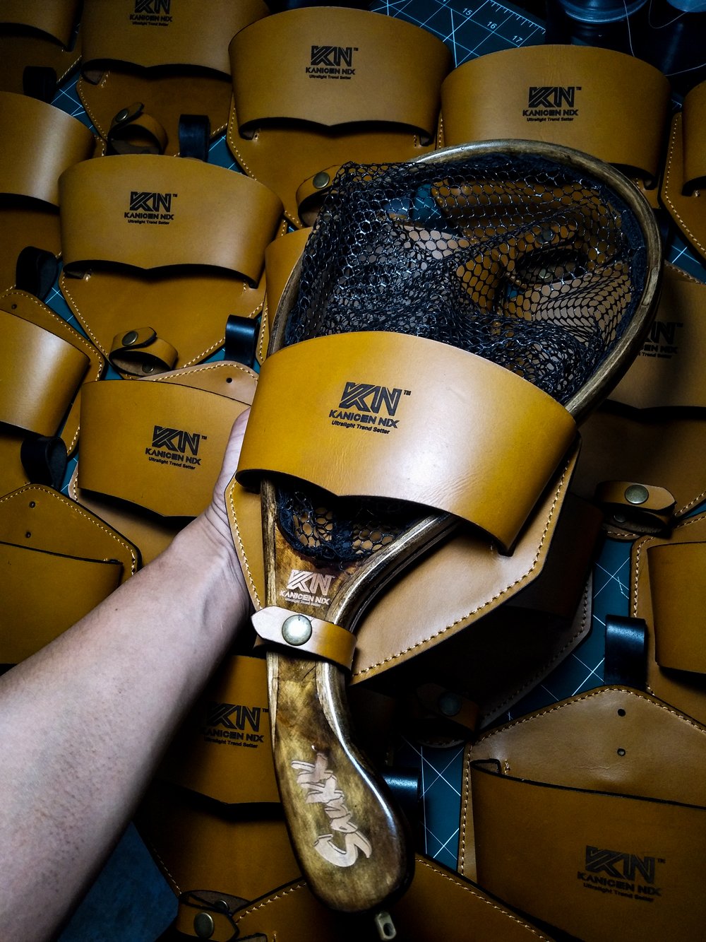SAUKK also includes an exclusive full-grain leather cover, crafted from the highest grade of leather materials. Engraved with the Kanicen Nix logo, this cover adds a premium touch to the landing net. Designed with storage in mind, it enables anglers to conveniently carry and store the landing net while wading. Portable and secure, it can be easily attached to your belt or bag for added convenience.