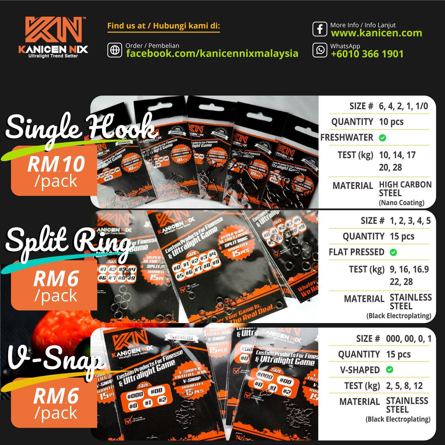 Introducing our latest range of terminal tackles cater for ultralight and finesse anglers. It comes in various sizes and features.